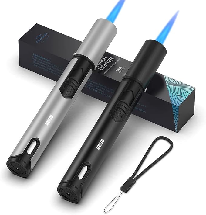 - 🔥【Torch Lighter & Gift Idea】The 6in long torch lighter is easy to carry, and comes with a lanyard which is convenient for you to hang it in a safe place. The lighter gift box has a beautiful design which is a great gifts idea for friends, Christmas Day, Birthday. You can use it according to the intended applications such as grill, candle, BBQ, camping, baking, fireplace, soldering or DIY jewelry.