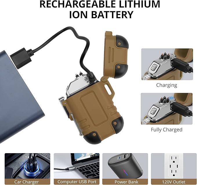 - Safe Flameless Arc Lighter – The flameless design of our rechargeable electric lighters means you can start a fire in almost any weather conditions. It reduces the chances of burns, and unintentionally starting a forest fire. The plasma electrodes produce a high temperature arc which ignites a fire in an instant.