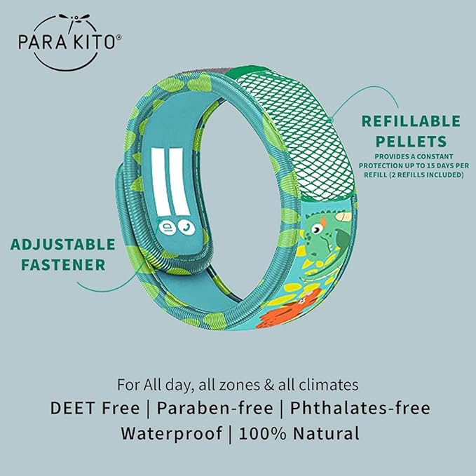 - FUN & STYLISH PROTECTION: Whether strolling through a forest or playing at the pool, PARA’KITO Kid's Wristbands will become your child's best friend. Can be worn around the wrist or ankle. You can even place it beside your sleeping pad for the perfect mosquito-free camping night. The perfect addition to your glamping accessories, or to your hiking & camping gear!