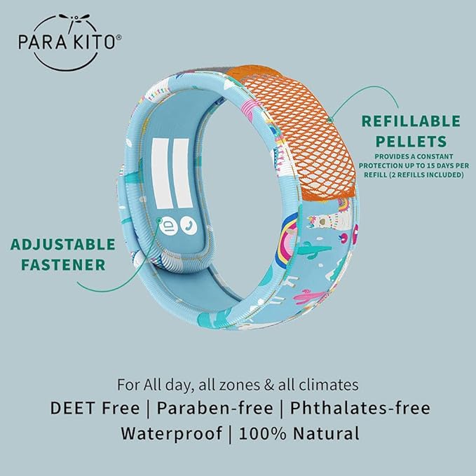 PARA'KITO Bug & Mosquito Bracelets for Kids | Mosquito Spray Alternative | Waterproof, Outdoor Insect Wristband w/Natural Essential Oils | Hiking, Trekking & Camping Accessories (Llama)