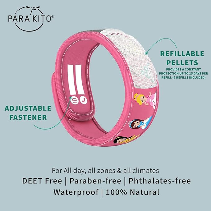 PARA'KITO Bug & Mosquito Bracelets for Kids | Mosquito Spray Alternative | Waterproof, Outdoor Insect Wristband w/Natural Essential Oils | Hiking, Trekking & Camping Accessories (Princess)