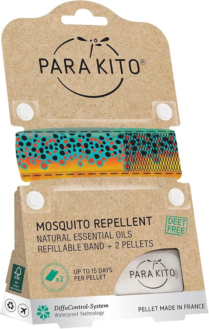 PARA'KITO Mosquito Insect & Bug Protection Wristband - Mosquito Stickers & Bug Spray Alternative - Summer Essentials, Beach Accessories, Hiking & Camping Essentials - Natural Essential Oils (Trout)
