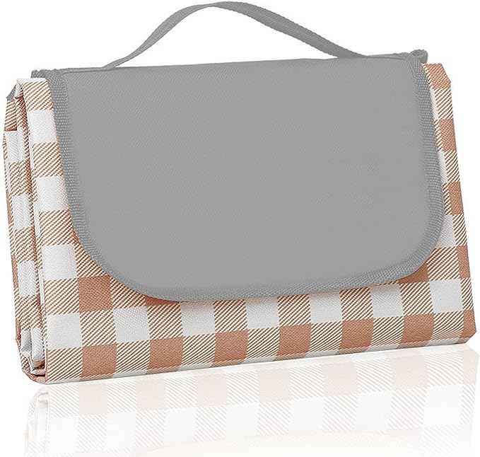 QWXNRG Outdoor Picnic Blanket, Foldable Waterproof Sand Mat, Extra Large Picnic Blanket 60" x 80" for Beach Camping Hiking Travel Outdoor Family Concerts - Brown Striped
