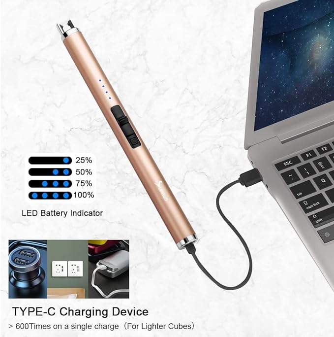 SUPRUS Lighter Electric Candle Lighter USB Type C Rechargeable Lighter with Upgraded LED Battery Display Safety Switch Flameless Plasma Windproof for Candle Cooking BBQs Fireworks (Champagne Gold)