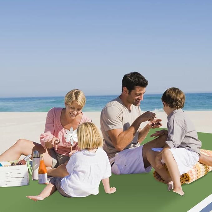 - Thin And Ultra Portable: The 82''×78'' size beach/picnic blanket comfortable fit 3-5 adults. This mat has been designed to be lightweight that volume only 7''x 4''x 1.5'' after folding and it weighs only 0.8 lb