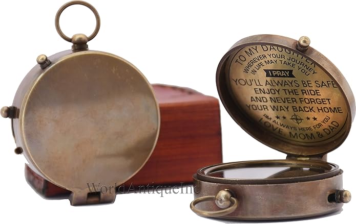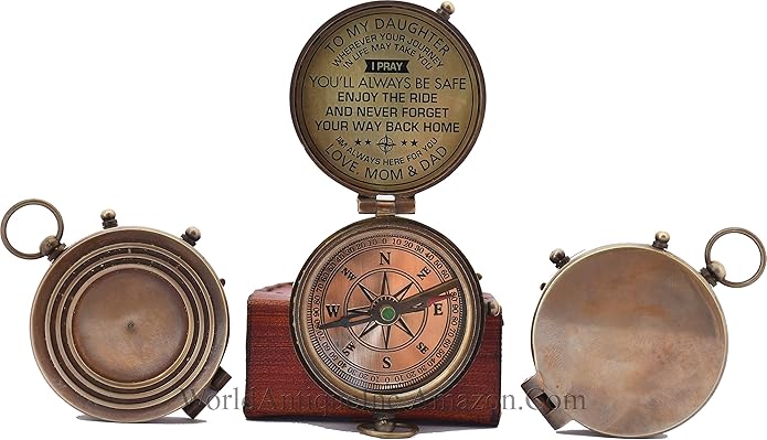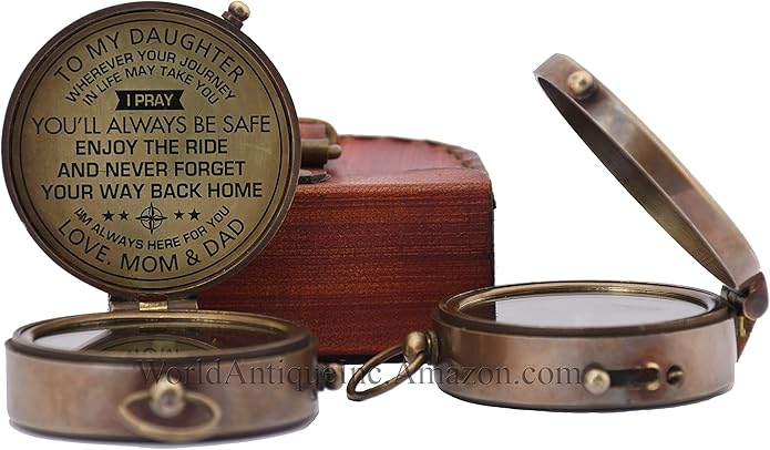 - Engraved pocket compass with Leather Case featuring the saying "To my Daughter: wherever your journey in life may take you, I pray you’ll always be safe. Enjoy the ride and never forget your way back home. I’m always here for you." LOVE MOM & DAD. What’s more unique than a personalized gift? Saying never comes off so the personalized gift will be appreciated by your Daughter for many years to Come.