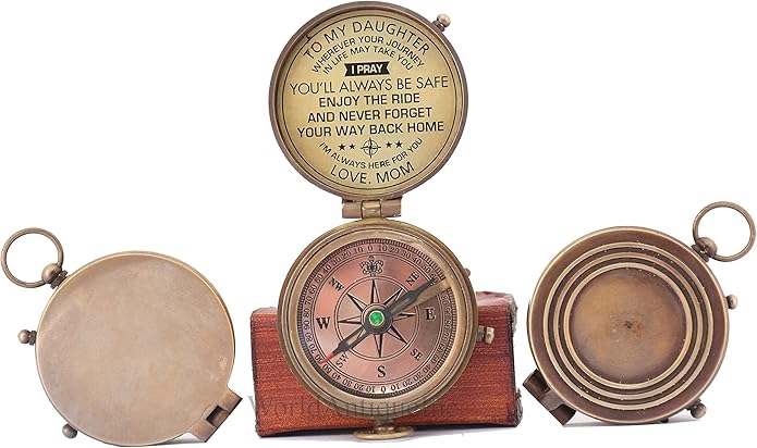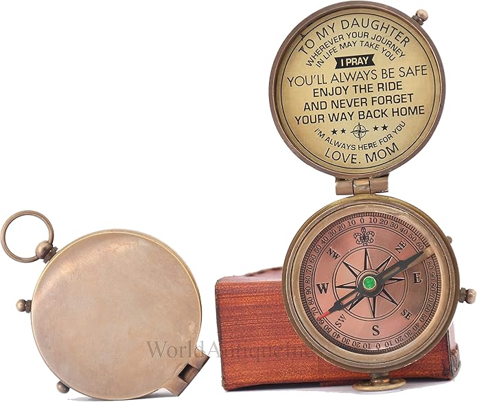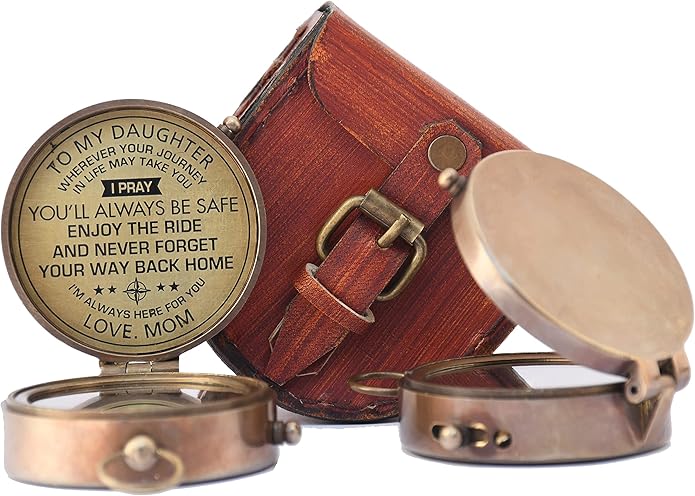 - Engraved pocket compass with leather case featuring the saying "To my Daughter: wherever your journey in life may take you, I pray you’ll always be safe. Enjoy the ride and never forget your way back home. I’m always here for you." LOVE MOM. What’s more unique than a personalized gift? Saying never comes off so the personalized gift will be appreciated by your Daughter for many years to Come.