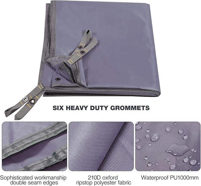- Reinforced: Tent footprint is equipped with 10 rust proof grommets. Double layer corner tech and heavy duty security stiching to ensure strength and superior quality.