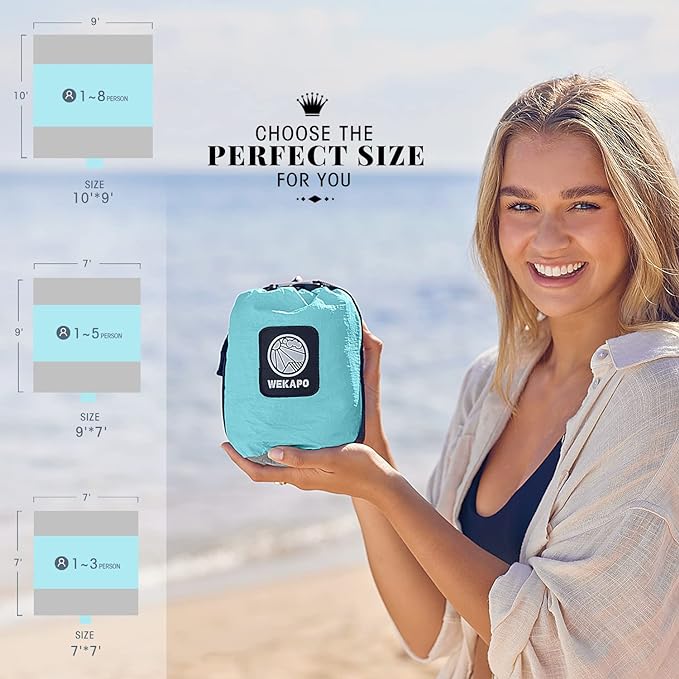 WEKAPO Beach Blanket Sandproof, Extra Large Beach Mat, Big & Compact Sand Free Mat Quick Drying, Lightweight & Durable with 6 Stakes & 4 Corner Pockets