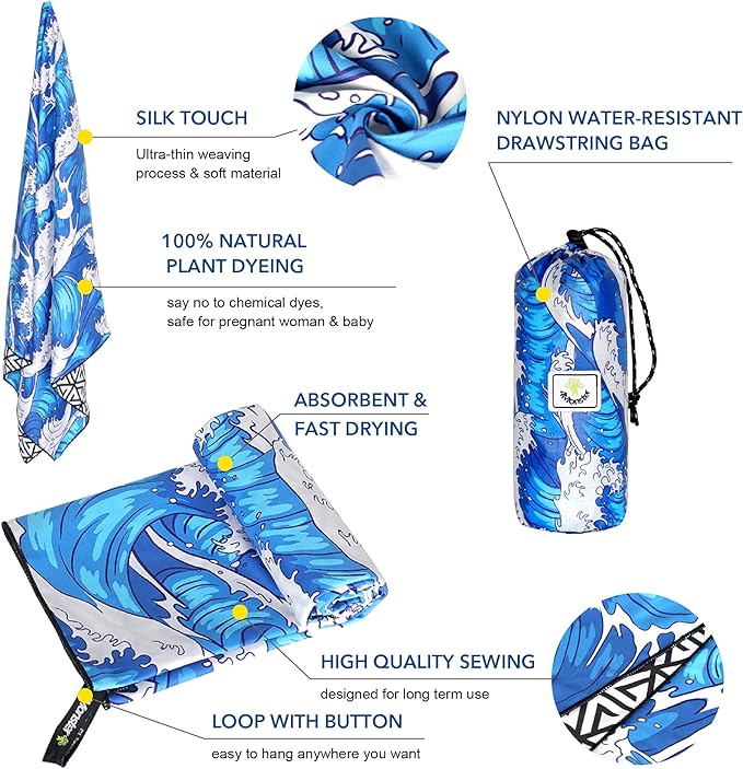 - 【100% Sand Free】Designed for beaches and camping,engineered to repel sand, ensuring that sand grains won't stick to the towel. After use, simply shake off the towel, and sand will easily fall off, making it hassle-free to clean.