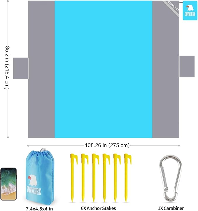 covacure Beach Blanket - Extra Large Beach Blanket Waterproof Sandproof Fits 108”X 85.2" for 8 Adults, Oversized Beach Mat with Zipper Pocket, Outdoor Beach Accessories for Travel, Camping, Hiking