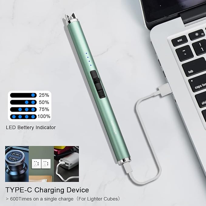 ARECTECH Lighter Rechargeable Lighter Electric Lighter Candle Lighter Arc Plasma Lighters for Candle Kitchen Camping Type-C Green