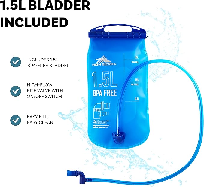 High Sierra Hydrahike 2.0 Hydration Backpack with 2L Water Bladder for Running, Hiking, Camping, or Cycling