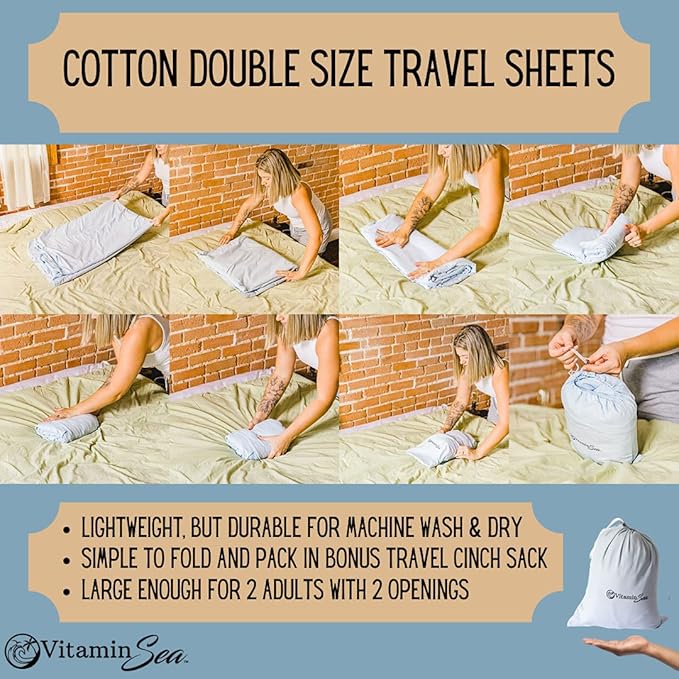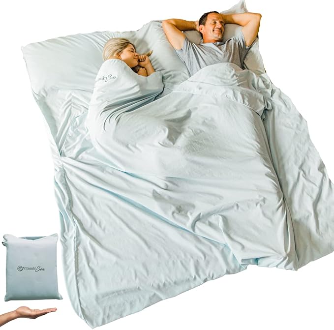 - ๐๐จ๐ง๐ -๐ฅ๐๐ฌ๐ญ๐ข๐ง๐ ๐๐๐ฌ๐ข๐ ๐ง - Ever had to endure sleeping on a questionable bed while traveling? The sleep sack for adults are the perfect way to stay safe and clean in RVs as RV bedding, in vacation rentals on a queen size travel bed, inside a 2 person sleeping bag liner while camping & more! This double sleeping bag liner is a queen size which can fit 2 adults, has double openings, is super lightweight, & easy to clean in the wash.