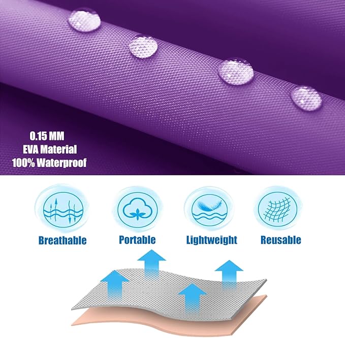 - Quality Conscious Choice: Made from premium EVA material, our rain poncho is tough, completely scentless, and soft - superior to PE or PEVA. Compact for easy storage and carry in backpacks, suitcases, cars, or at school for unexpected rain