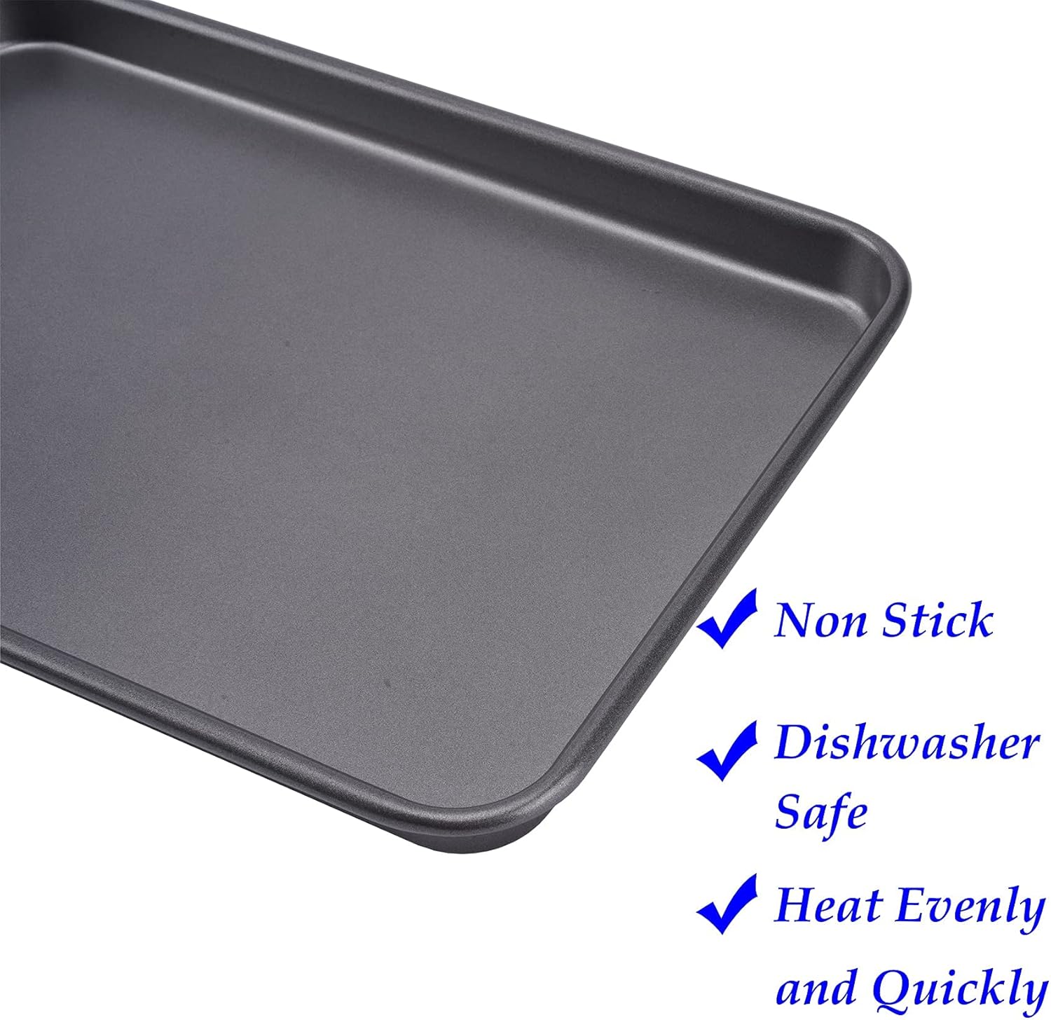 2 Cookie Baking Sheet Pan Nonstick 15.55 x10.63Inch (Inner 14.76x9.84inch) Jelly Roll Tray 2x Thicker Carbon Steel Non -Toxic Bakeware