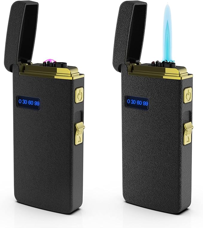 USB Lighters Windproof Rechargeable Dual Arc Lighter Inflatable Lighter Refillable Lighter Matte Black Color for Outdoor Camping Hunting Backpacking Hiking Kitchen