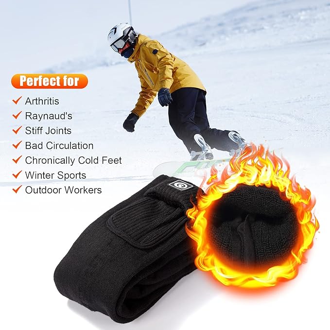 - 【Suitable for Winter Outdoors】Over the calf heated warmer socks are friendly with your ski boots; Coolmax, elastic, and Spandex material provides premium insulation performance while being midweight thickness and soft; the battery heated long socks are perfect for hunting, camping, skiing, skating, snowboarding, fishing, hiking, walking dogs, motorcycle, riding, office or outdoor working, etc.