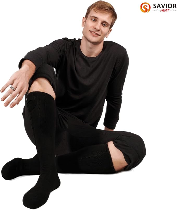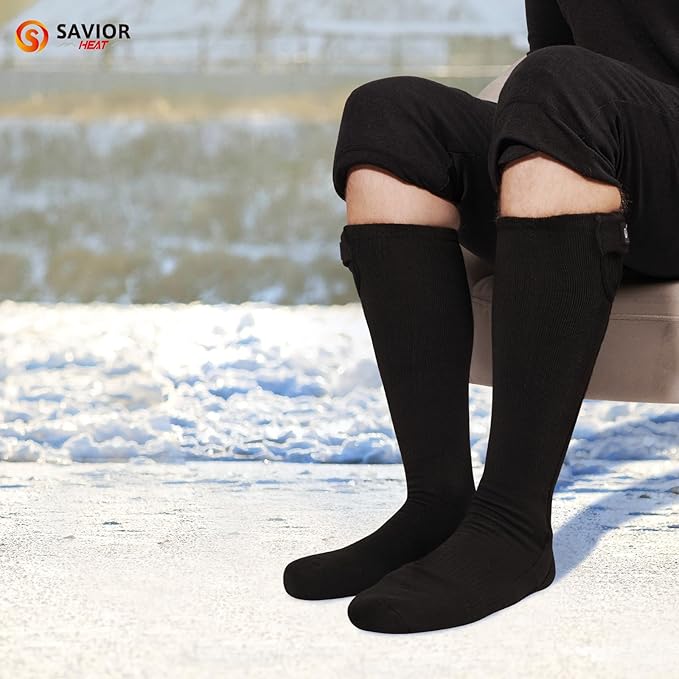 Heated Socks for Men Women, SAVIOR HEAT Electric Rechargeable Battery Thick Long Ski Socks for Winter Cold Weather Hunting Hiking Camping Skating Motorcycle Cycling Fishing