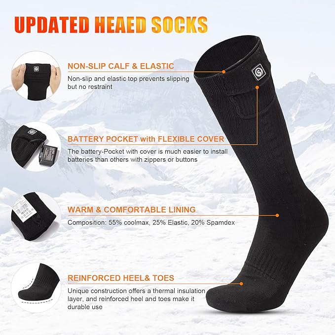 - Premium Heated socks for Men and Women: 55% Cool-max+ 25%Elastic+20% Spandex