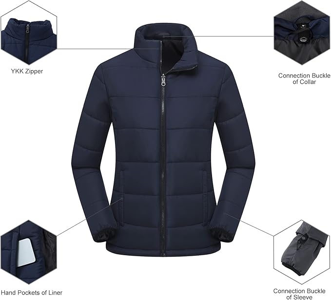 • All seasons 3-in-1 jackets - A womens winter jacket in all weather conditions for outdoor activities. This womens coat can be worn with all layers in the cold winter, and in other seasons you can just wear a waterproof shell detachable hooded jacket, or only the insulating liner.