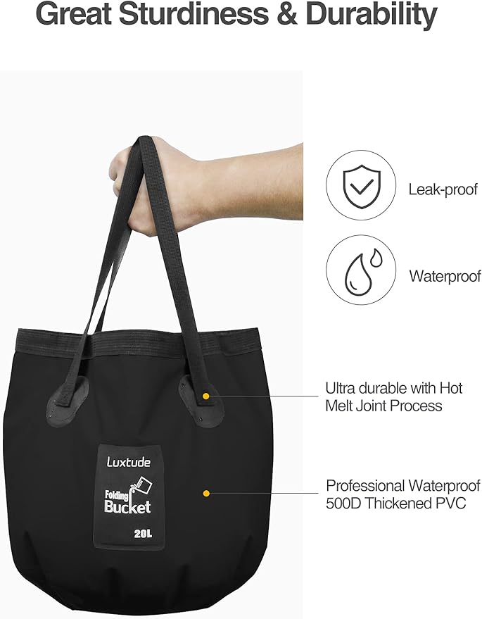 - ❤ DURABLE & LEAKPROOF: Made of professional waterproof 500D fabric and will not leaking even at low temperature. Double-stitched and sealed seams procedure make the camping bucket more durable.