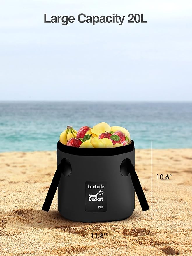 Luxtude Collapsible Bucket with Handle, 5 Gallon(20L), Portable & Ultra Lightweight Outdoor Basin Bucket, Folding Bucket for Fishing, Camping, Hiking