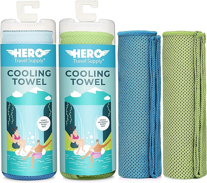 Hero Cooling Towel for Travel, Hiking, Sports, Yoga (2-Pack) Ultra Soft Microfiber 40" x 12"