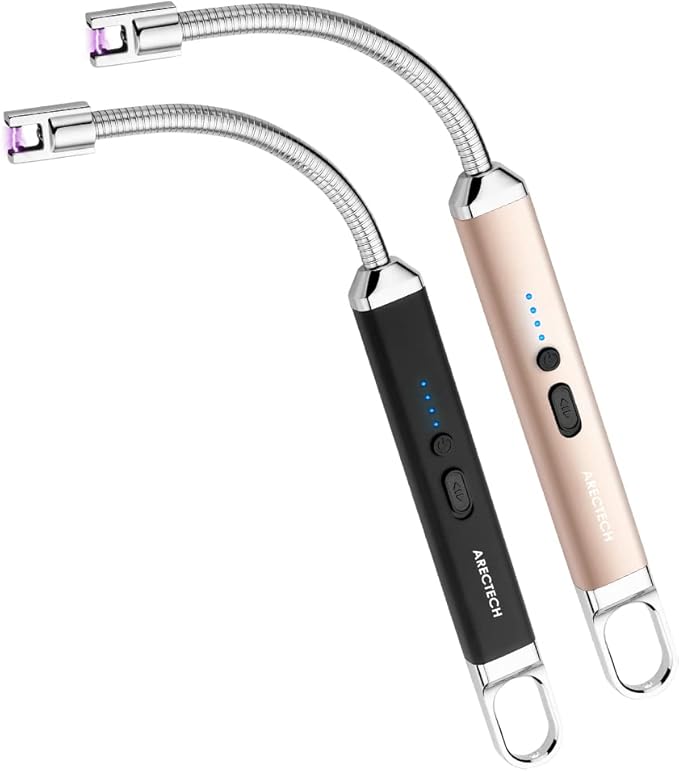 ARECTECH Electric Lighter 2 Pack, Candle Lighter Flameless Rechargeable USB Lighter Windproof with Safety Switch for Camping Cooking BBQs Fireworks Black&Champagne Gold