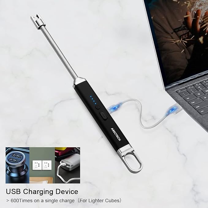 ARECTECH Lighter Electric Lighter Arc Candle Lighter Flameless Rechargeable Lighter USB Long Lighters for Candle Cooking BBQs Fireworks Black