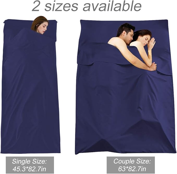 - ✅【PERFECT SIZES 】- 45 x 82.7inch(115 x 210cm) fits for single; 63 x 82.7inch(160 x 210cm) fits for strong single people or couples ; 70 x 82.7inch(180 x 210cm) fits for double. All size are large enough to stretch arms and legs. This Lightweight Portable Sleeping Bag Liner and Camping Sheet can be fold down in a about 8.3 X8.3 inch pocket for easy carry and saving pace in your backpack.