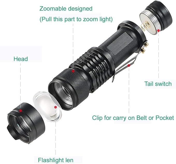 - Three red flashlights are included in the package. The Red light beam can be zoomed in and shoot more than 150 yard; The red light can be used for sending signal, for asking help, for warnings.