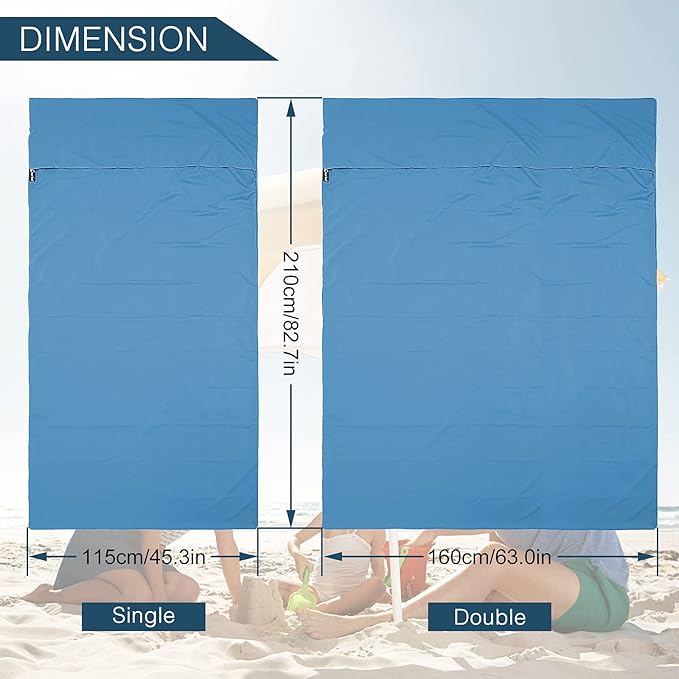 - [2 Size Options] Single- Fits 1 People: 45 x 82.7inch, Double- Fits 2 People: 70.9 x 82.7inch. It has ample room for tall people without having excess material that makes you uncomfortable. The opening length is 100cm/39’’ for you to get in.