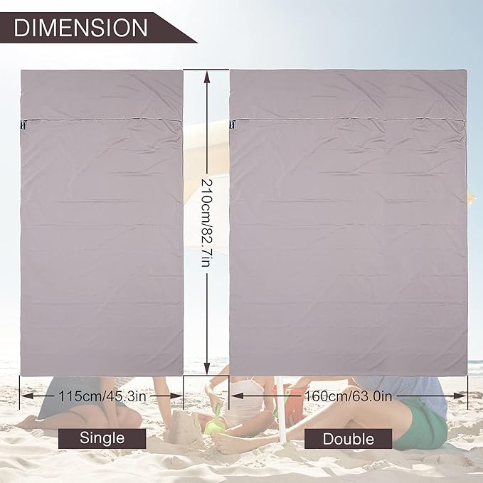 - [2 Size Options] Single- Fits 1 People: 45 x 82.7inch, Double- Fits 2 People: 70.9 x 82.7inch. It has ample room for tall people without having excess material that makes you uncomfortable. The opening length is 100cm/39’’ for you to get in.
