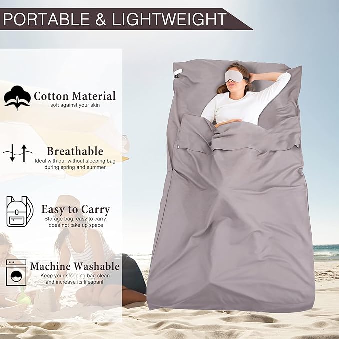 - [KEEPS YOU AND YOUR CAMPING BEDDING CLEAN] Increase the longevity of your sleeping bag by protecting it from bacteria, sweat and other potential contamination. Bring it on your camping/backpacking trip to have it ready for camp and hostels to discourage those nasty bed bug. Why not even bring it on your weekend trip as a clean layer between hotel sheets for extra protection?