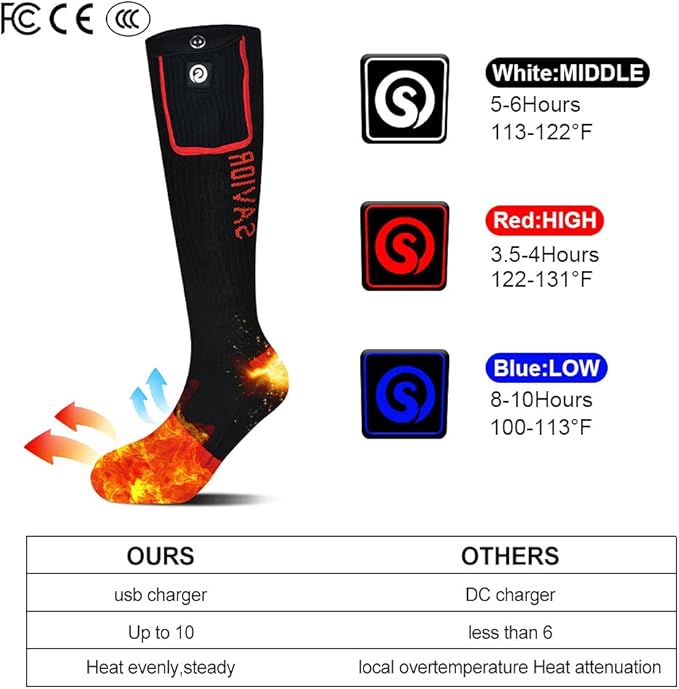 - 🔥{Perfect Winter Gift}This heated socks are suitable for winter camping, mountain climbing, hunting, ice fishing, biking, motorcycles, and skiing. Heating socks are the perfect birthday gift and the best heart-warming gift.