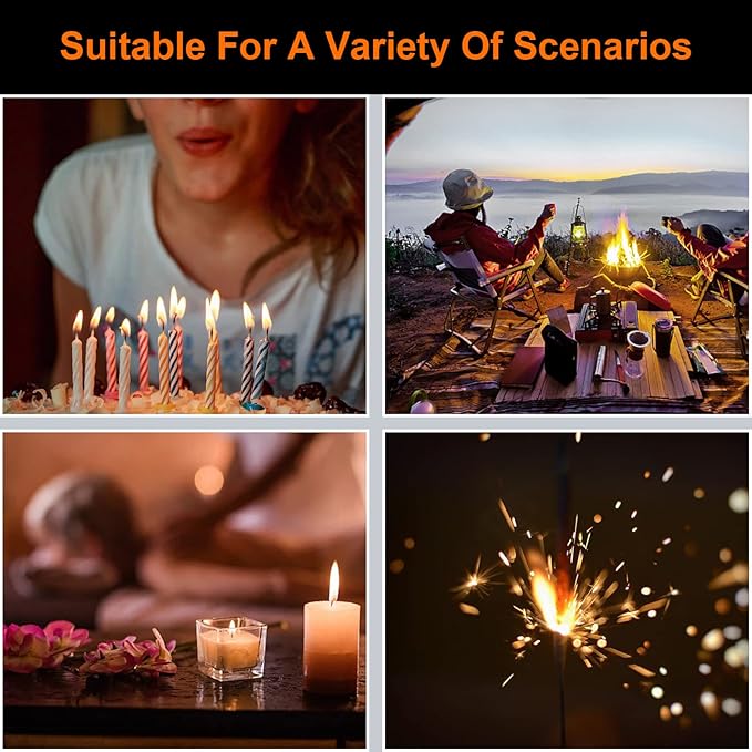 - PORTABLE LIGHTER: The slim lighter is suitable for daily indoor and outdoor use. Perfect for different occasions like party candles, fireplaces, incense burners, gas stoves, outdoor camping and barbecue.