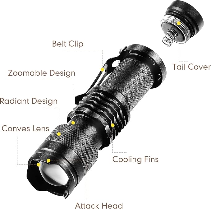 - Suitable for many occasions: the LED flashlight can be applied widely, the focal length can be adjusted according to different circumstances, and the LED flashlight is suitable for cycling, mountaineering, camping and other outdoor activities
