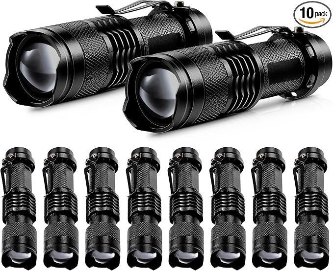 10 Pack Mini Flashlight LED Flashlight 3 Mode Flashlight Adjustable Handheld Flashlight for Camping Hiking Outdoor Work (Black)