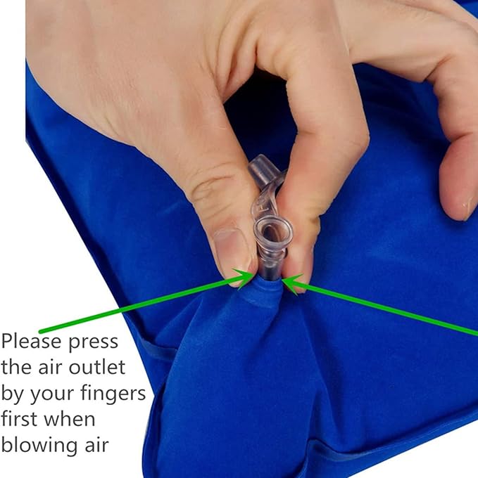 - Inflation- Pinch flat or bite flat the nozzle and blowing it for few seconds,inflates in just a couple of breaths and stays aired up for days; Deflation: pinch flat the nozzle and deflate it with pressing on the table, and then you can fold the pillow for backpacking.