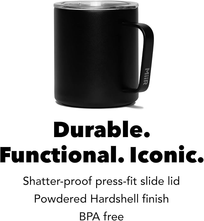 MiiR, Camp Cup, Vacuum Insulated, Stainless Steel with Slide Lid, BPA Free, Black, 12 Fluid Ounces