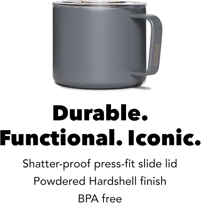 MiiR, Camp Cup, Vacuum Insulated, Stainless Steel with Slide Lid, BPA Free, Basal, 8 Fluid Ounces