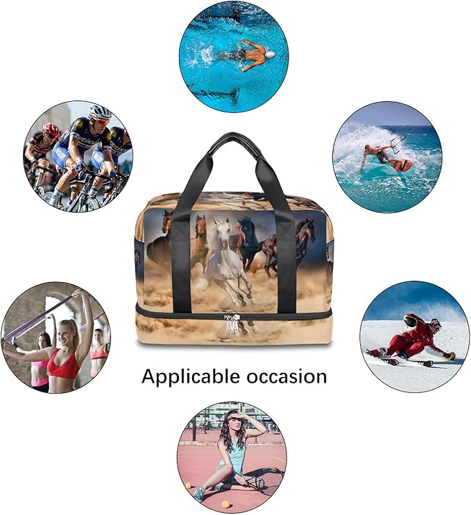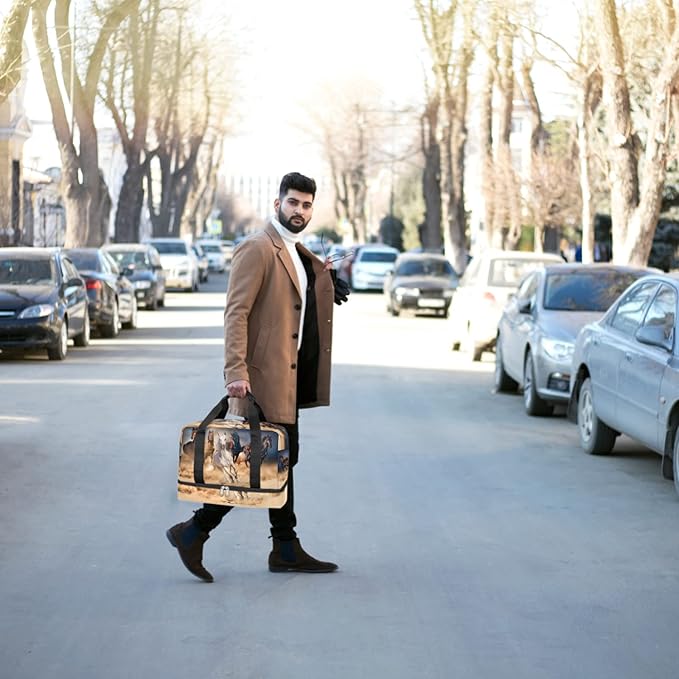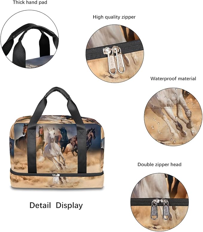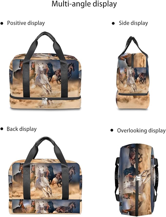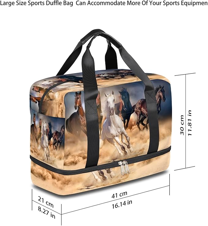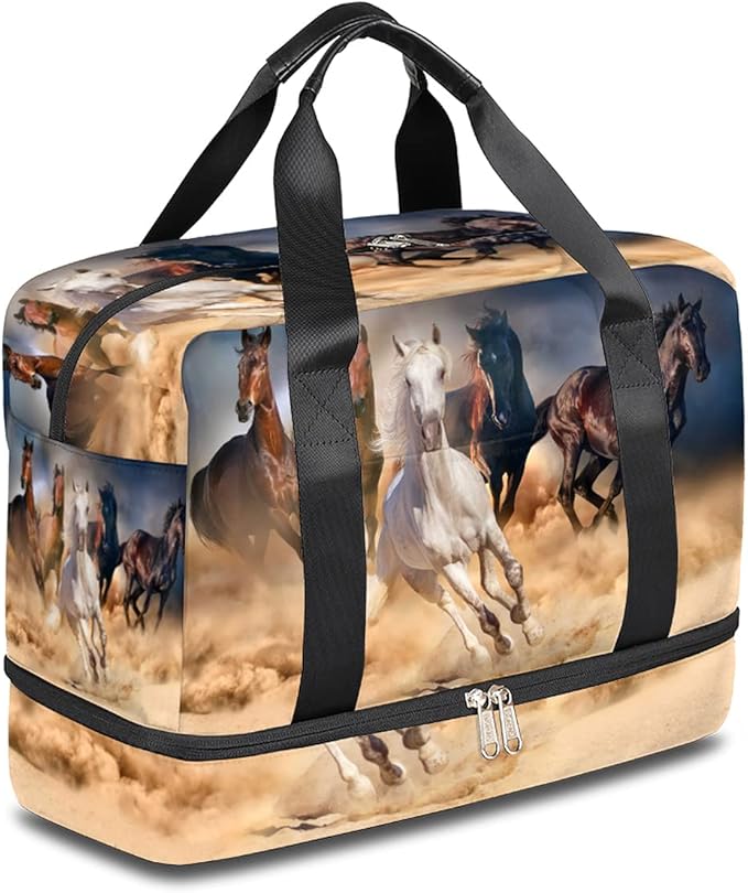 Horse Travel Duffel Bag, Desert Running Horse Weekender Overnight Bag Large Carry On Bag, Waterproof Sports Gym Bag Tote Workout Duffel Bag for Men Women