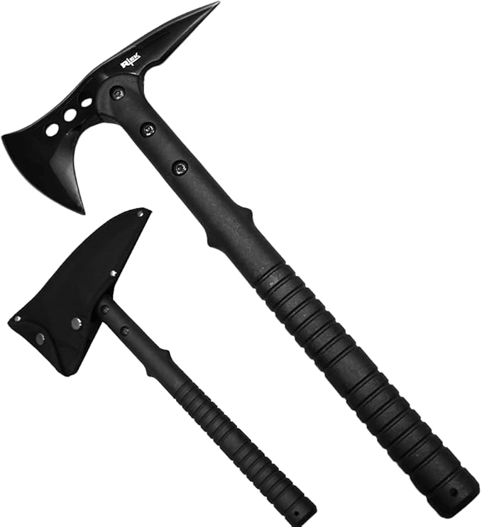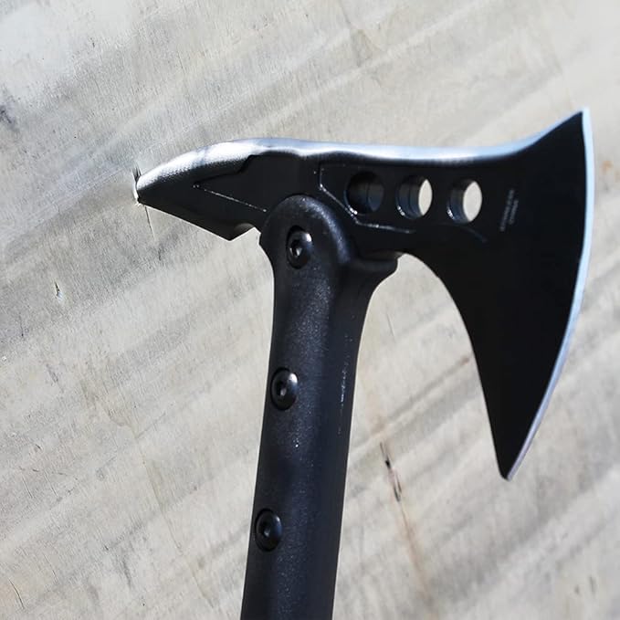 - Tactical axe designed for cutting, splitting, and throwing with sharp cutting edge