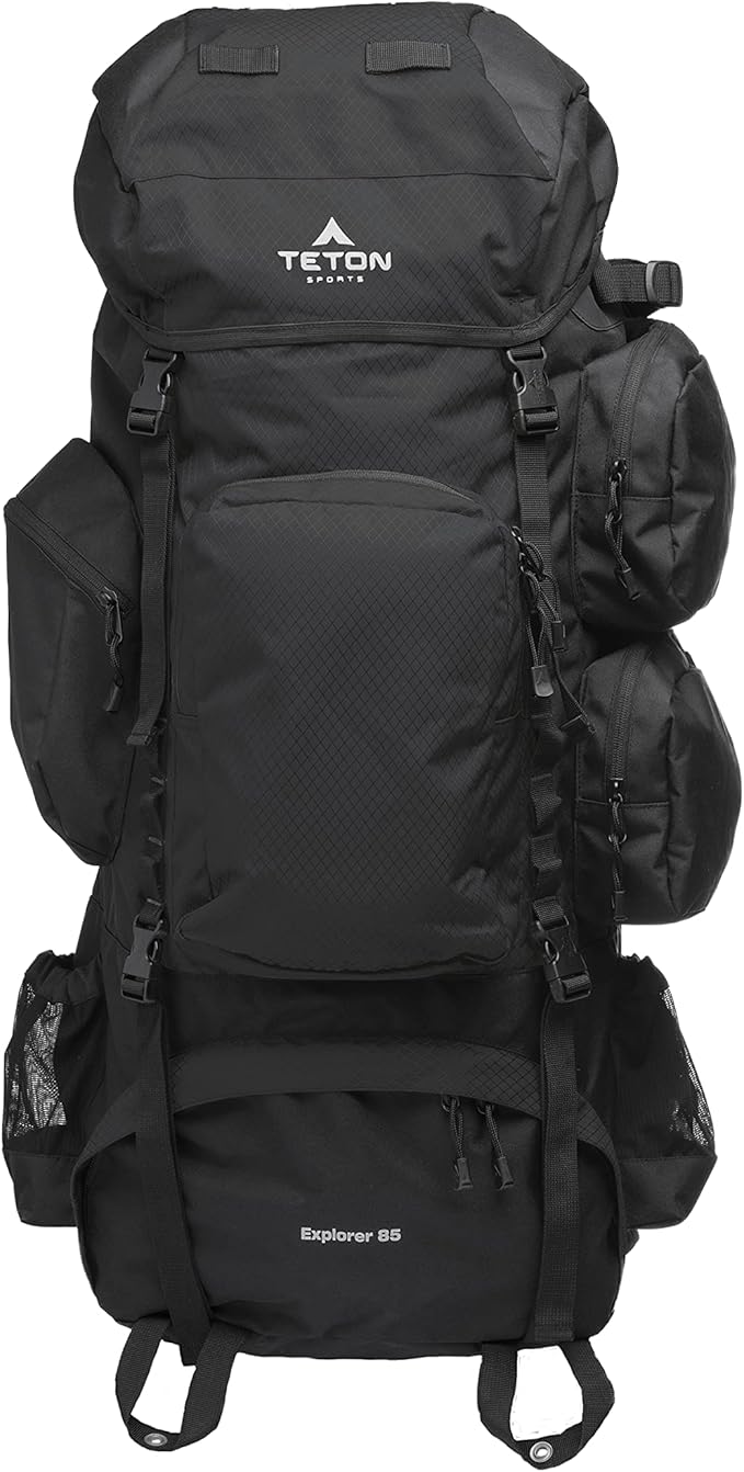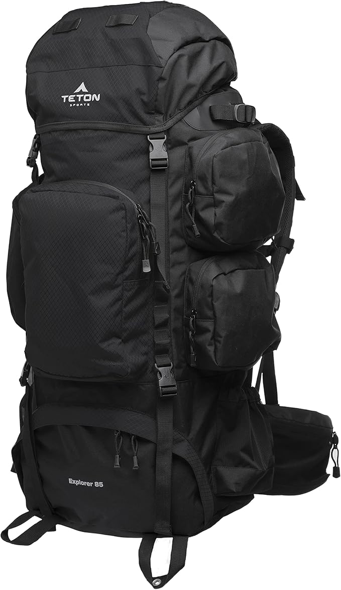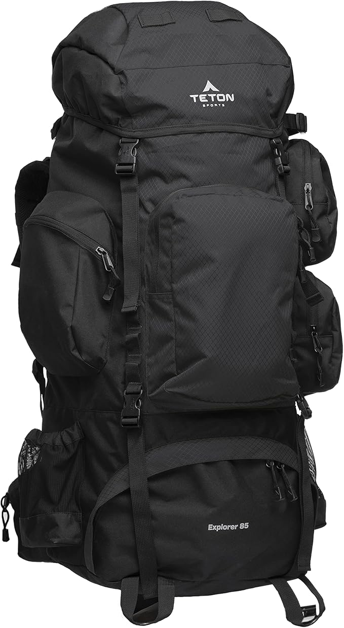 TETON 85L Explorer Internal Frame Backpack for Hiking, Camping, Backpacking, Rain Cover Included, Black