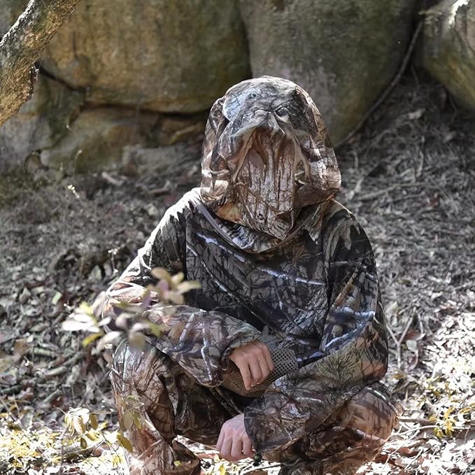 - Made of lightweight polyester fabric, the outside can be clearly seen through the mesh. This is a camouflage mosquito suit with high visibility, good breathability and ultra-fine mesh very suitable for outdoor Fishing, Camping, Hiking, Bee keeping, Climping and Gardening.