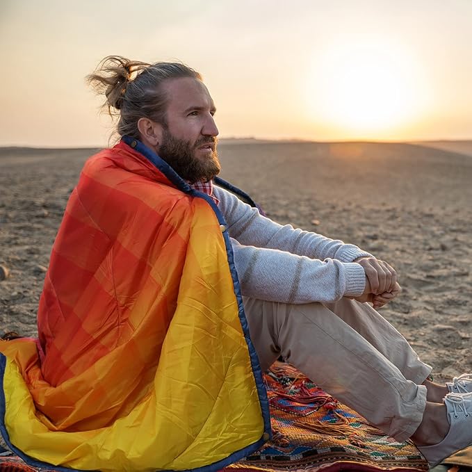 - 【Multipurpose Puffer Blanket & Poncho】 - This is a multi-purpose backpacking blanket ultralight. In addition to being used as a warm camping blanket for sleeping for cold weather, the buttons on both sides combine to be used as a poncho, which is very convenient and can free your hands.