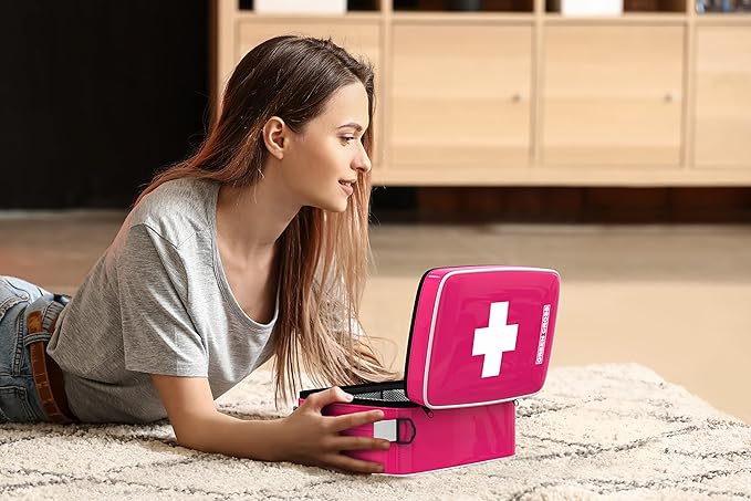 GREEN CROSS Smell Proof Medicine Bag with Combination Lock 8.5" x 5.5" x 4.5"(Pink Vinyl)