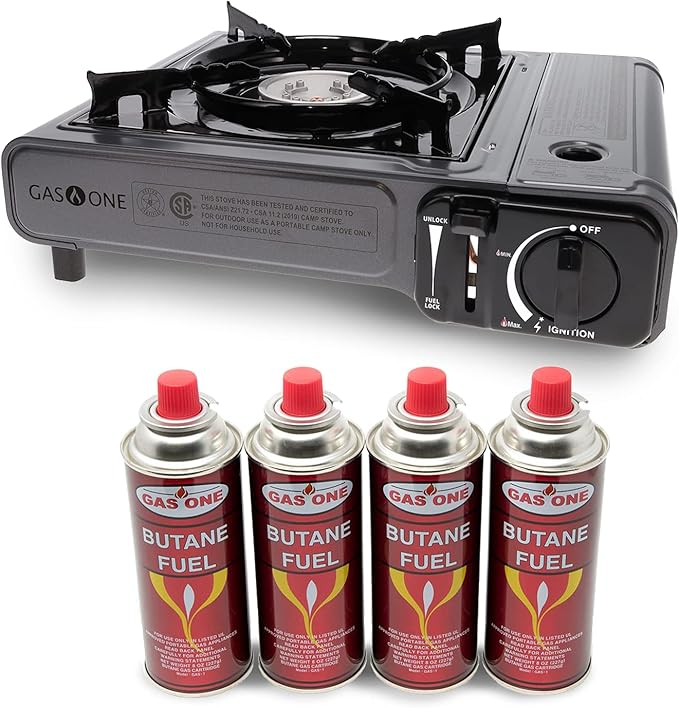 Gas One Butane Gas Stove with 4 Fuel Canister Catridge - Gray
