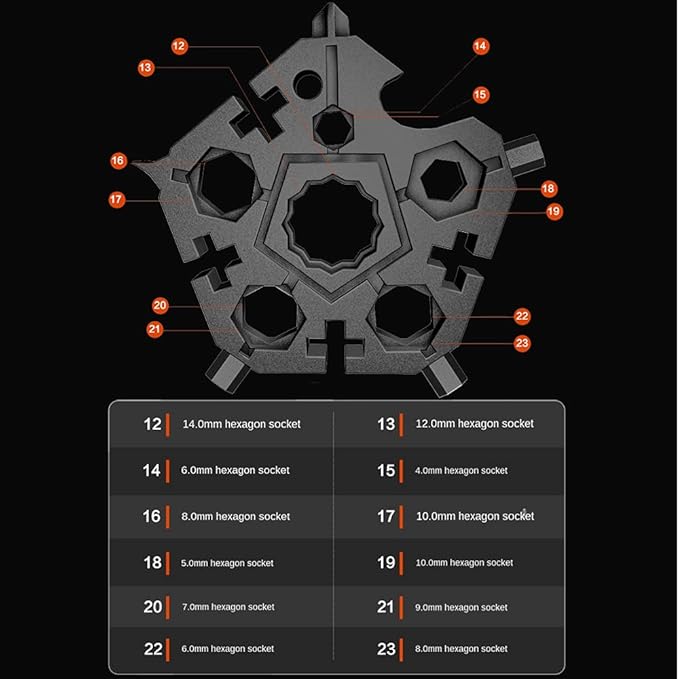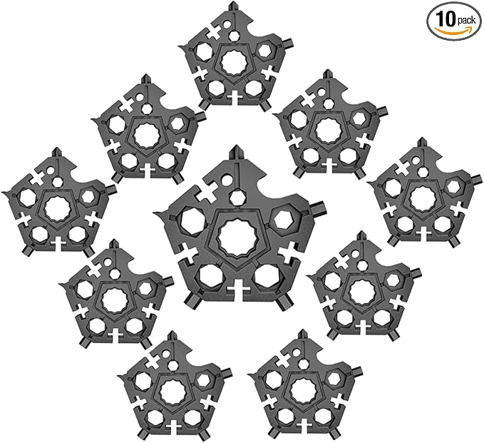 10 Pack The Pentagon Carbon Steel 23-in-1 Snowflake Multitool Screwdriver, 18 in 1 Multi Snow Tool Wrench New Upgrade (Black)